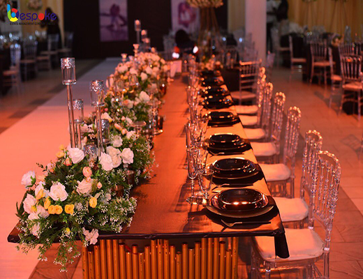 THE BESPOKE EVENTS CENTRE is a premium and elegantly styled venue designed to host weddings, corporate events, conferences, receptions, birthdays, and exclusive social celebrations. With a flexible seating capacity ranging from 600 to 1,000 guests, the centre offers a spacious and well-structured layout suitable for both medium and large-scale events. The venue is furnished with crystal Chiavari chairs, adding a touch of luxury and sophistication to every occasion. Combining refined interiors, modern facilities, and a serene ambience, THE BESPOKE EVENTS CENTRE provides a truly elevated and memorable event experience
