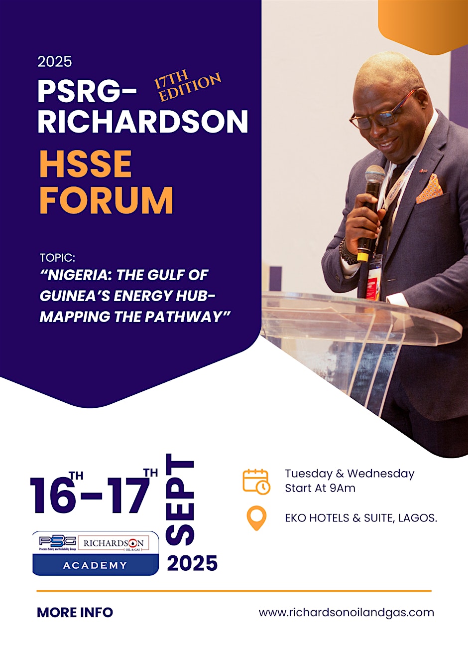 The PSRG-RICHARDSON HSSE Forum is an annual forum for practitioners to meet, discuss and analyze issues on Health, Safety, Security and Environment (HSSE) practices in their individual sectors. It is an avenue to share industry challenges and proffer workable solutions to issues related to HSSE and other areas. This event is OPEN and FREE for all to attend, regardless of industry and occupation.