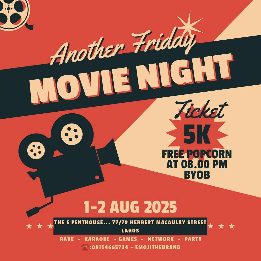 The E Penthouse 77/79 Herbert Macaulay Street, Lagos, Lagos, NigeriaIt’s more than just a movie night—it’s a full-on weekend vibe! Join us on August 1st & 2nd, 2025 for a laid-back yet electric evening filled with great movies, free popcorn, and your favorite drinks (yup, it’s BYOB!). Whether you're coming to chill, vibe, or meet new people—this is the place to be. Details:Venue: The E Penthouse, 77/79 Herbert Macaulay […]