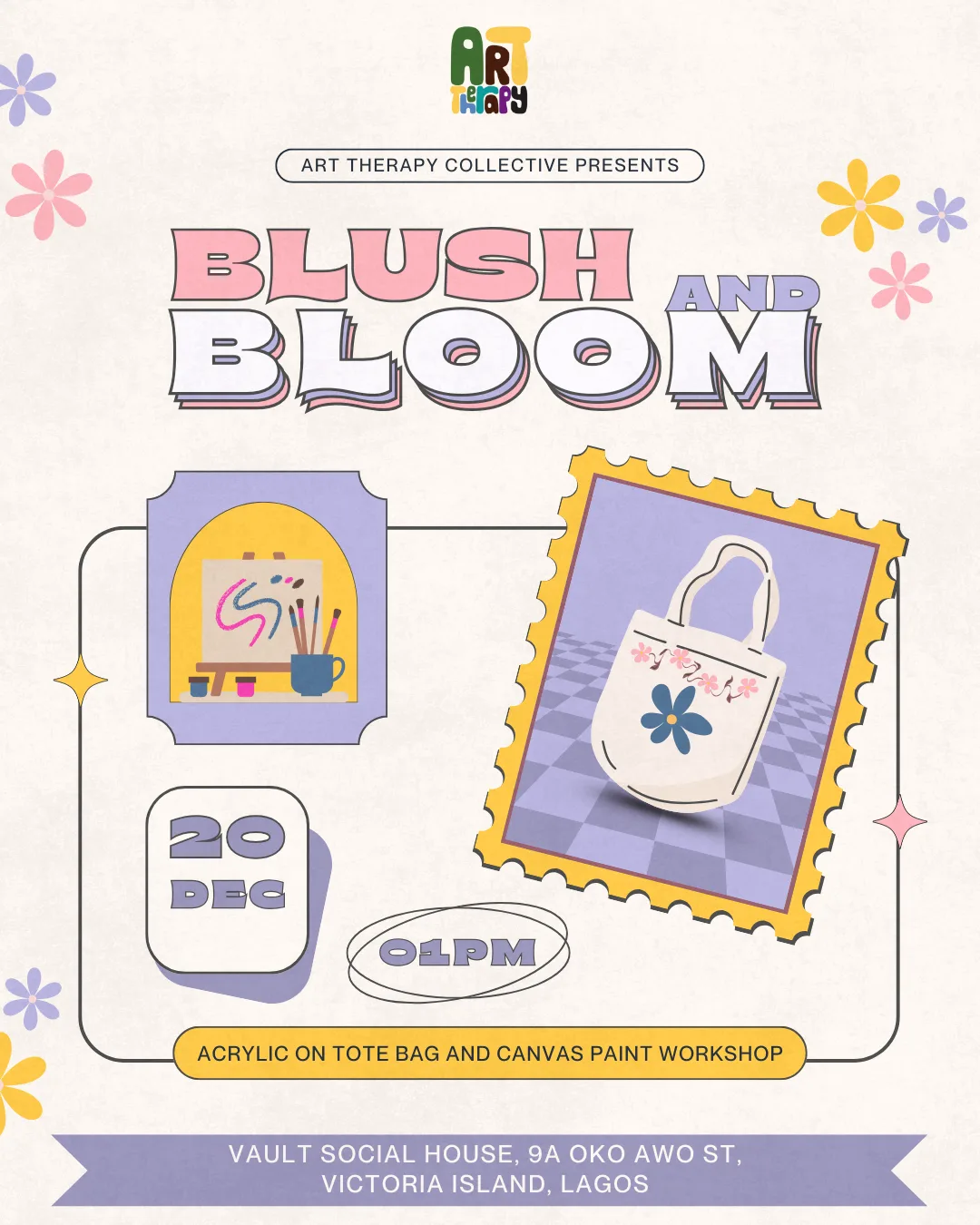 The Vault Social House 9A Oko Awo Street, Victoria Island, Lagos, NigeriaExperience a creative escape designed to calm your mind and awaken your self-expression. At Brush & Bloom, you’ll enjoy a relaxing session where you can paint on both canvases and tote bags using acrylics. It’s a gentle, mindful space to slow down, tune into your emotions, and create something that truly reflects you. Whether you’re painting a message, a meaningful symbol, […]