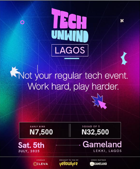 Jul 5 3:00 pm - 9:00 pm Tech Unwind 2025 Gameland The Lekki Coliseum - 14 Providence street, off Admiralty Way,, Lekki Phase 1 Event Details Get Directions