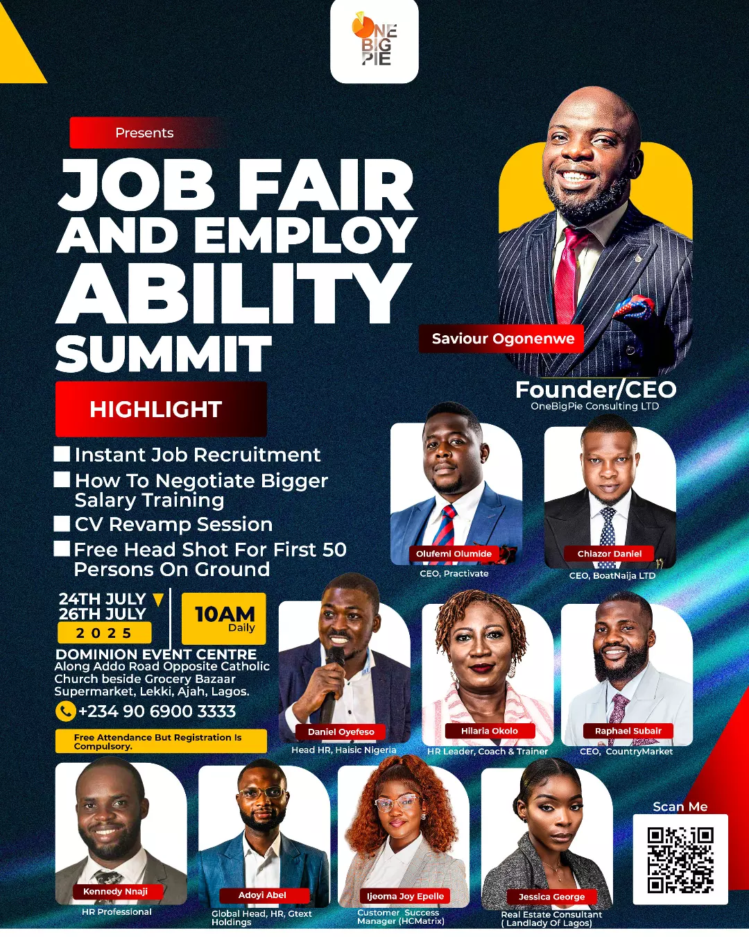 Jul 24 10:00 am - 5:00 pm Job Fair and Employability Summit Dominion Event Center 15 Addo Rd, Eti-Osa 101245, Lagos Event Details Get Directions
