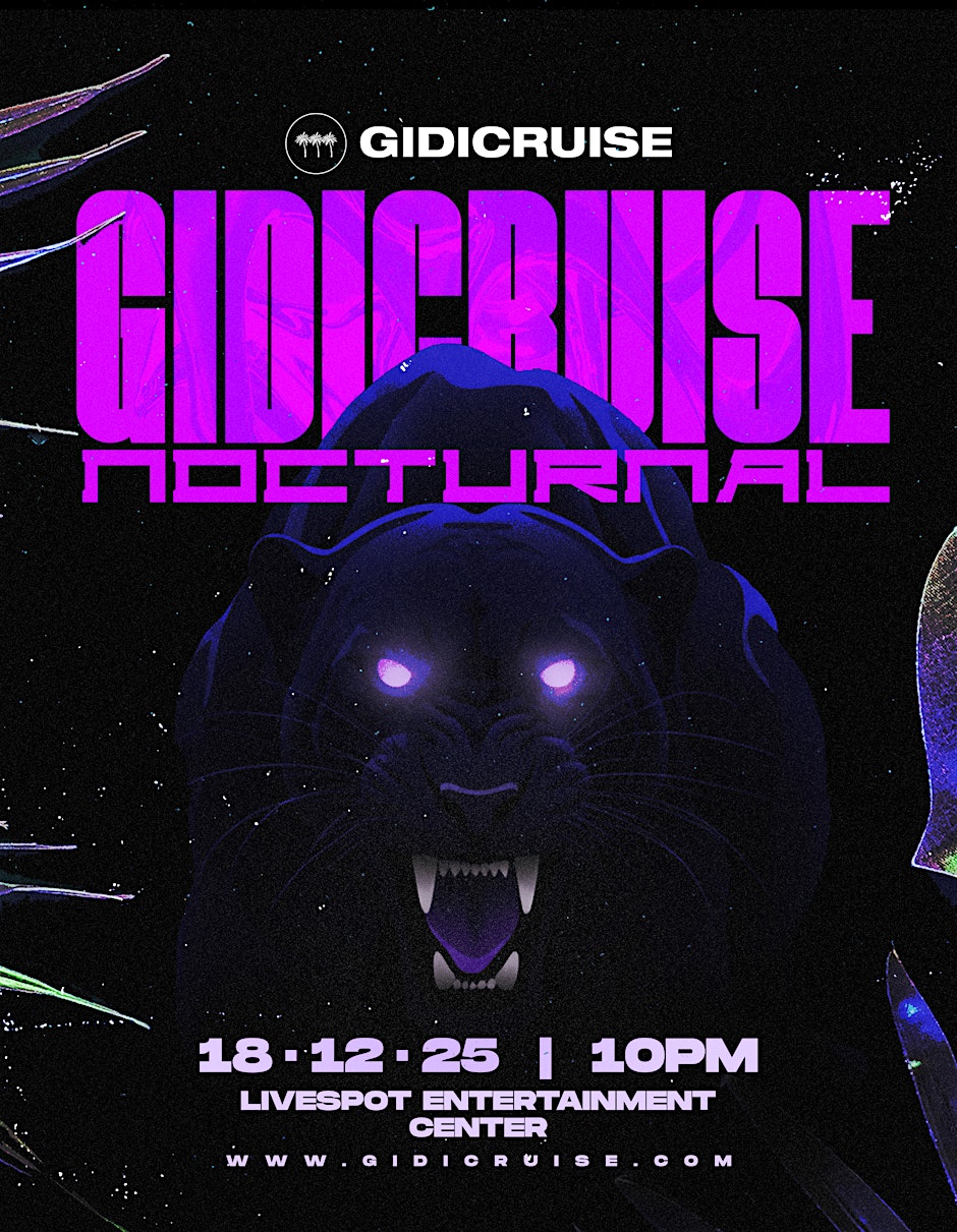 Dec 18 December 18, 2025 @ 10:00 pm - December 19, 2025 @ 5:00 am GIDICRUISE: NOCTURNAL Livespot Entertarium 4 Oba Elegushi Beach Road, Lekki Event Details Get Directions